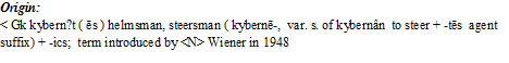 …the study of human control functions and of mechanical and electronic systems designed to replace them, involving the application of statistical mechanics to communication engineering.